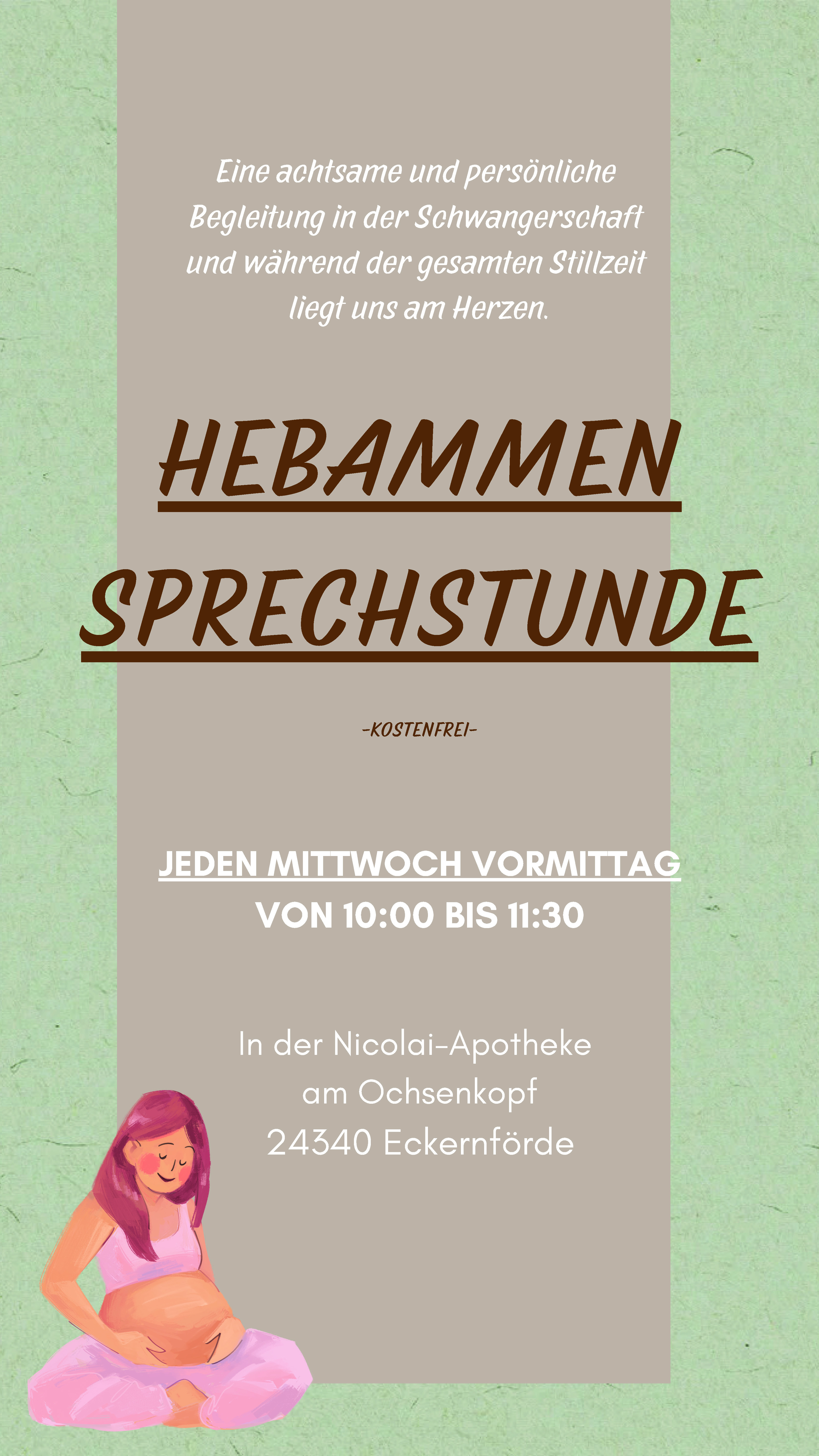 Unsere Hebammen-Sprechstunde findet jeden Mittwoch-Vormittag von 10:00 bis 11:30 Uhr in der Nicolai-Apotheke am Ochsenkopf statt.